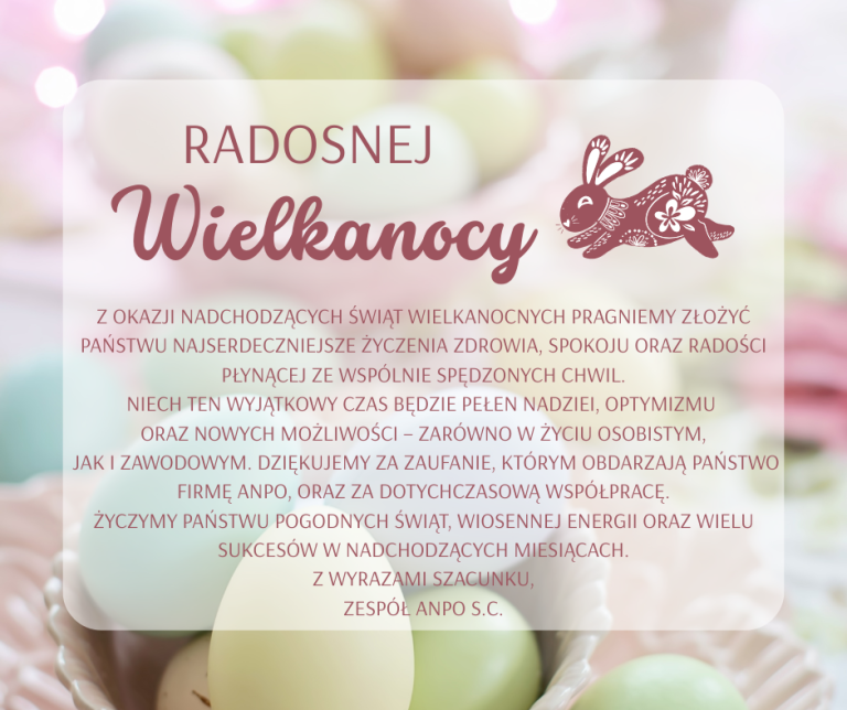 Z okazji nadchodzących Świąt Wielkanocnych pragniemy złożyć Państwu najserdeczniejsze życzenia zdrowia, spokoju oraz radości płynącej ze wspólnie spędzonych
